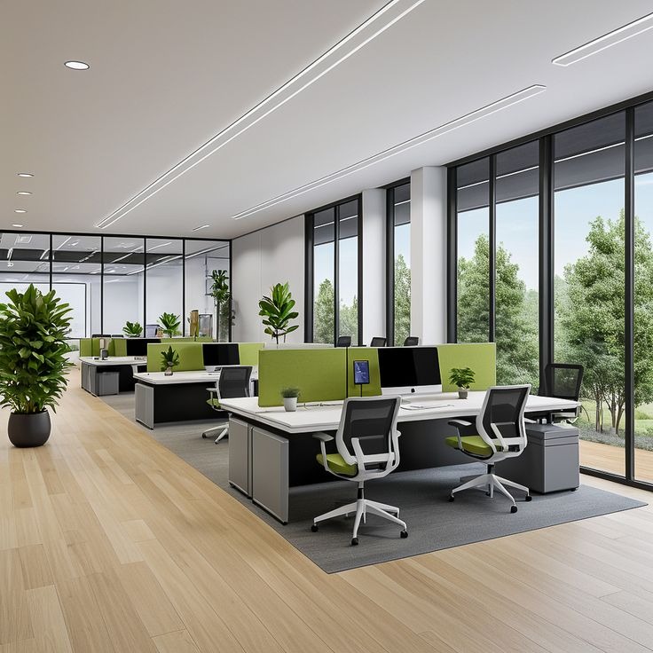Our workstation planning focuses on workflow efficiency, ergonomics, natural light optimization, and employee comfort.